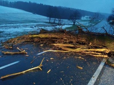 Pozvani smo bili zaradi podrtega drevesa preko cestišča. Po prihodu smo zavarovali kraj, razžagali podrto drevo, odstranili les iz vozišča ter počistili cesto.